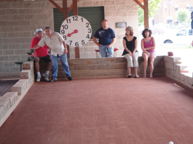 Carl enlightens his young protege in the finer points of the game - or maybe talking about a recent fishing trip?